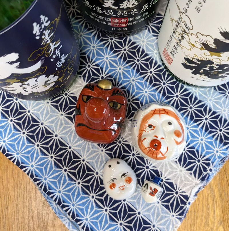 Hyottoko is a comical character and this cup has a hole where the mouth of the mask is so, in order to drink without spilling, one must cover the hole the whole time
